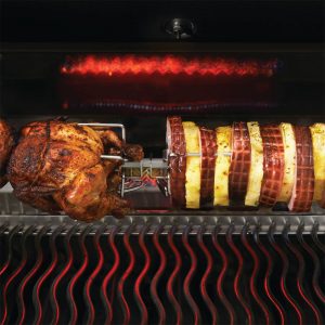 Built to hold up to 26.5 pounds of food, this heavy-duty motor is up for the challenge. The counterbalance also ensures a nonslip rotation for an evenly-roasted meal worthy of your favorite BBQ restaurant. Built to be compatible with Napoleon Rogue grills.