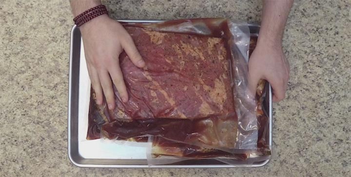 If you have a vacuum sealer, use it here to seal your brisket with the cure. If you don't have a vacuum sealer, don't worry - you can use ziplocks but just be sure to place them in a container in your fridge so they don't leak.
